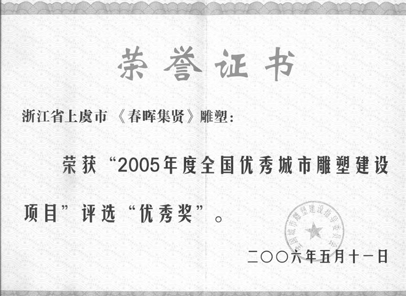 《春暉集賢》獲“2005年度全國(guó)城市雕塑建設(shè)項(xiàng)目”優(yōu)秀作品獎(jiǎng)