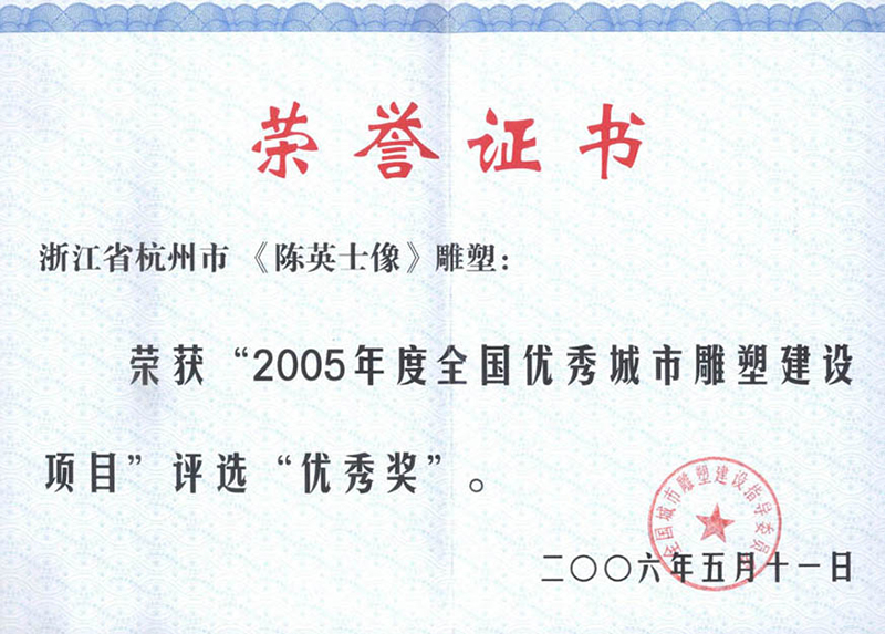 《陳英士像》獲“2005年度全國城市雕塑建設(shè)項目”優(yōu)秀作品獎