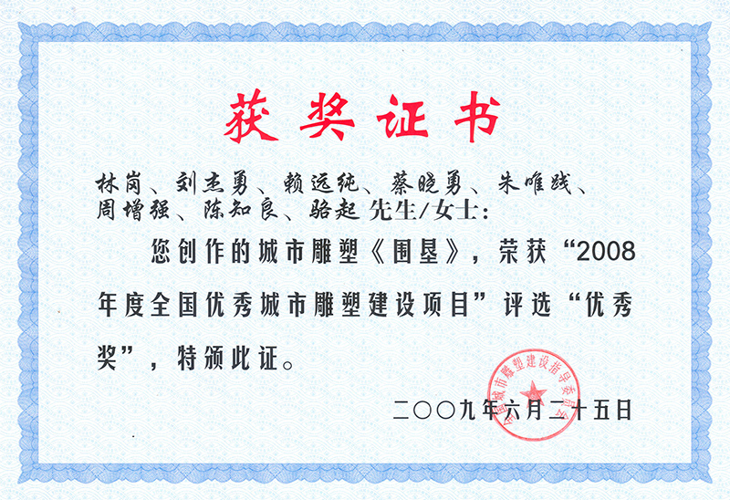 《圍墾》獲“2008年度全國城市雕塑建設(shè)項目”優(yōu)秀作品獎