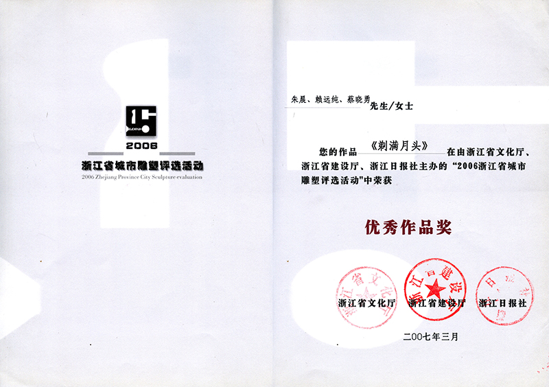 《剃滿月頭》“2006年浙江省城市雕塑評(píng)選活動(dòng)”優(yōu)秀作品獎(jiǎng)