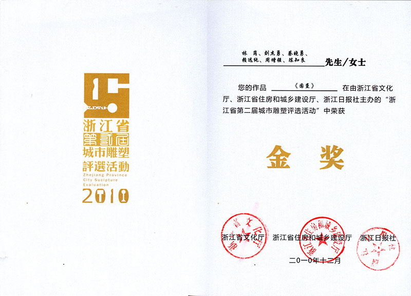 《圍墾》“2010年第二屆浙江省城市雕塑評選活動”金獎