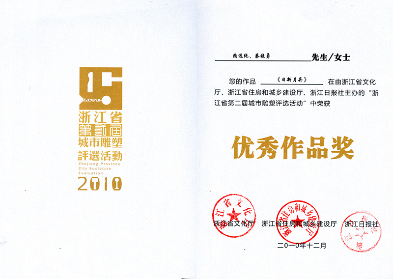 《日新月異》“2010年第二屆浙江省城市雕塑評選活動”優(yōu)秀作品獎
