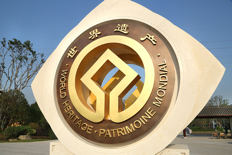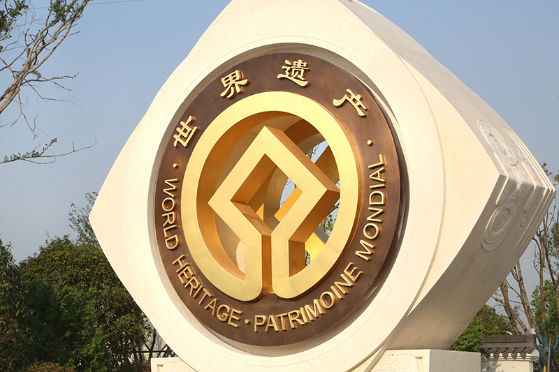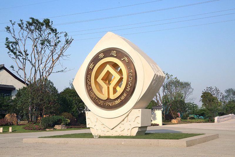2019年7月6日我國“良渚古城遺址”申遺項(xiàng)目在聯(lián)合國教科文組織第43屆世界遺產(chǎn)委員會大會上通過審議,成功列入《世界遺產(chǎn)名錄》,成為我國第32項(xiàng)世界文化遺產(chǎn)!這對杭州而言意義非凡,這是繼杭州西湖和杭州大運(yùn)河申遺成功之后,杭州的第三個世界文化遺產(chǎn)!如果說西湖文化遺產(chǎn)偏重于保護(hù)自然風(fēng)光,大運(yùn)河是我國南北文明的貫穿史,良渚則更側(cè)重于對華夏文明的溯源。這尊雕塑是我院根據(jù)良渚文化遺產(chǎn)最有代表性的玉琮造型與世界文化遺產(chǎn)標(biāo)志進(jìn)行的一次完美的結(jié)合。